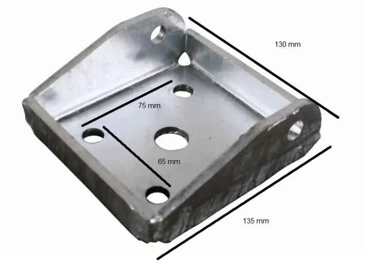 Spændebeslag for bladfjeder til Variant trailer, Plade for u-bøjle til bladfjeder, Mål 130 x 135 x 55 mm. Variant nummer 40530