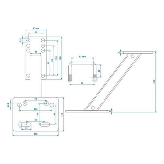 Reservehjulsholder med U-bøjler til montage på Triangel, Reservehjulsholder til trækstang på bådtrailer med flere. Universal Reservehjulsholder til Triangel, Til 4 og 5 huls fælg