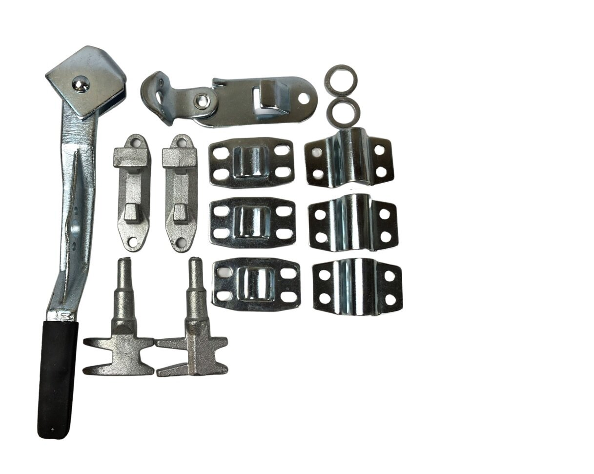 Stanglås med håndtag til lukket trailer, Beslag samt håndtag til bagklap på cargotrailer, Stift til påsvejsning af rør Ø13,5 mm, Stanglås til dør i løsdele